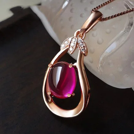 Best Quality famous brand gilt eggplant Necklace lovely red corundum female red Natural semi-precious stones pen
