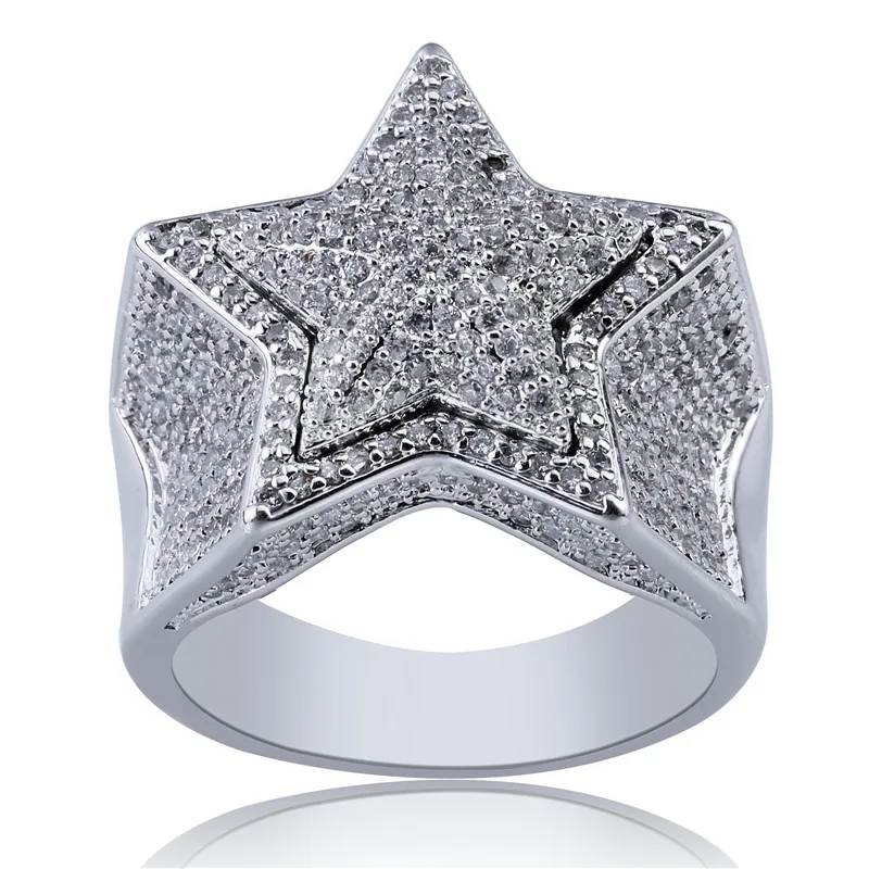 OMYFUN Gold Filled Star Ring Hip Hop Ring Luxury Hiphop Men Jewelry CZ Paved Bling Rings Rappers' P