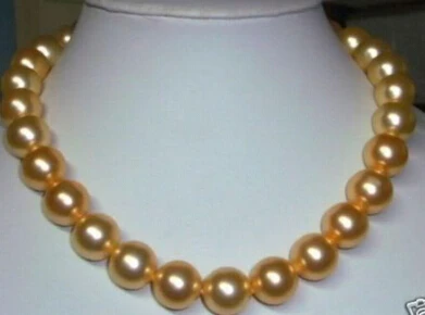 Beautiful 12mm gold south sea shell pearl necklace 17" LL003 Factory Wholesale price Women Gift wor