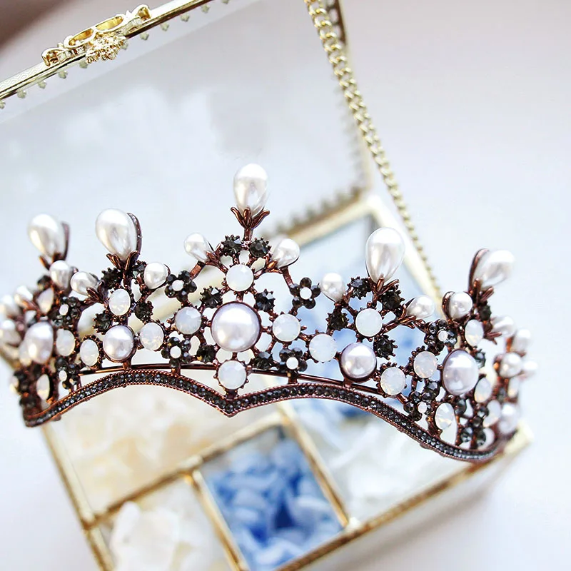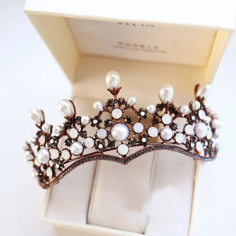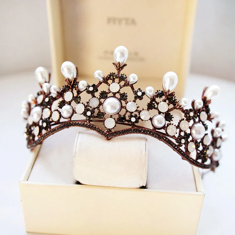 Vintage Pearl Crown Style Hairbands Princess Coffee Austria Crystal Rhinestone Wedding Hair Jewelry
