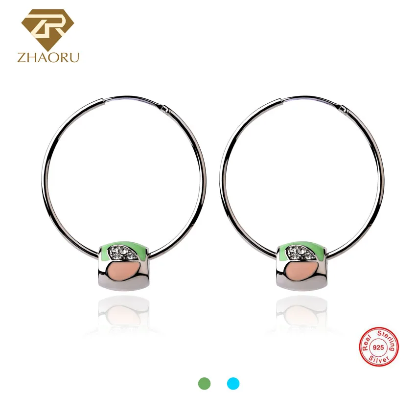 BEST QUALITY ZHAORU 925 Sterling Sliver Earrings Ear Loop Swarovski Earring Pandore Charm Earring for Women Fash