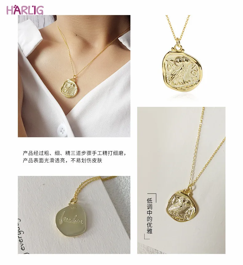 HIGH QUALITY Harlig sterling silver 925 gold color vintage pendant necklace for women allergy free fashion jewel