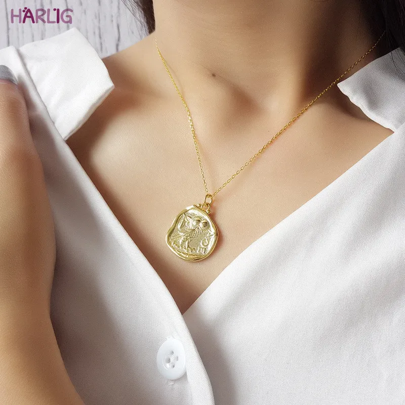 Harlig sterling silver 925 gold color vintage pendant necklace for women allergy free fashion jewel