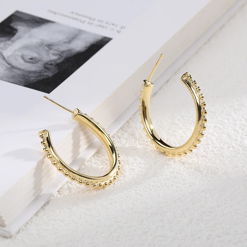 HIGH QUALITY Harlig sterling silver S925 gold color hoop earrings for women allergy free fashion jewelry trendy