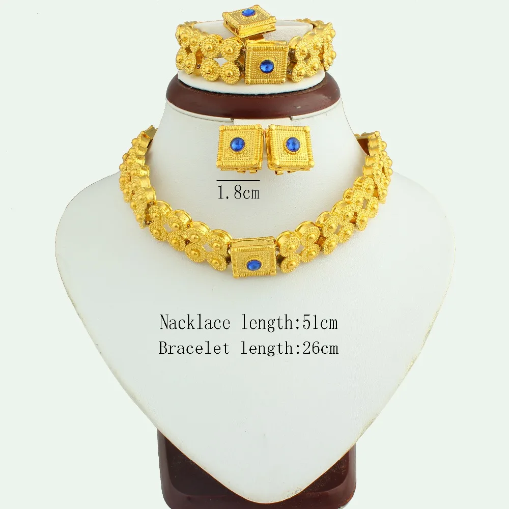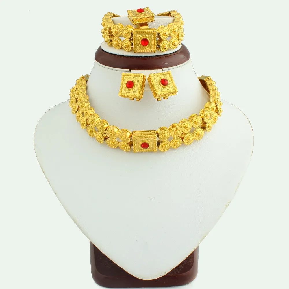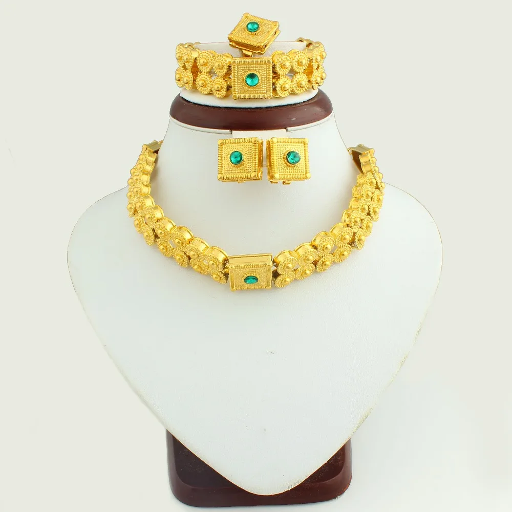 The New Ethiopian Gold Jewelry Set With Crystal Gold Color Fashion Jewelry For Women High Quality C