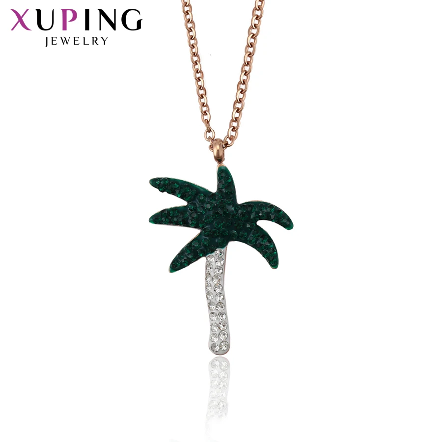 ORIGINAL Xuping Fashion Plant Necklace New Simple Temperament Necklace Women Long Rose Gold Color Plated Cla
