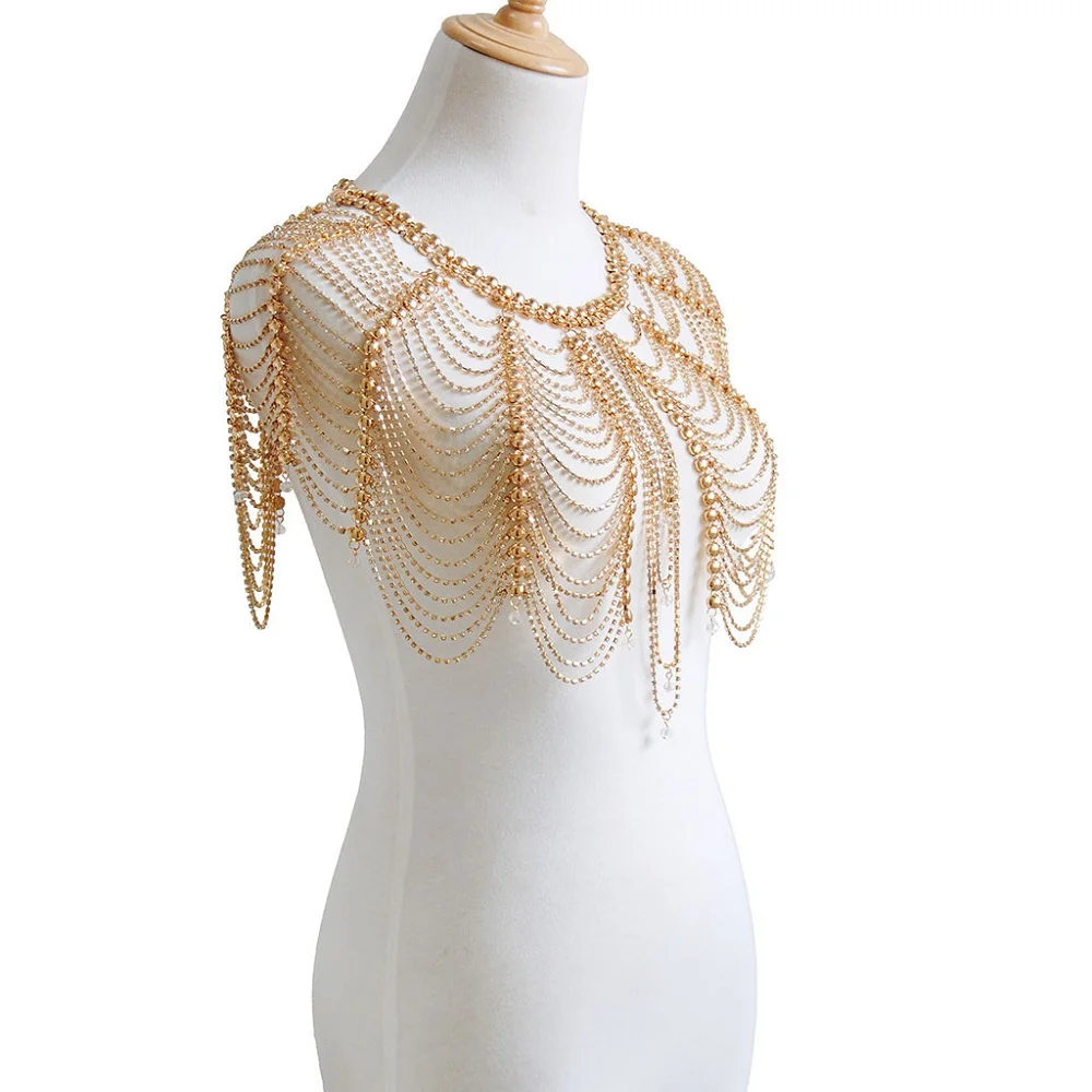 Trendy simple flash rhinestone necklace Trendy sexy tassel body chain