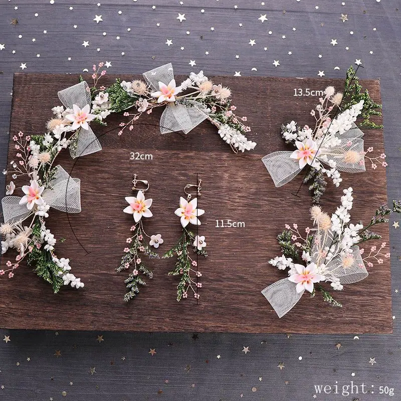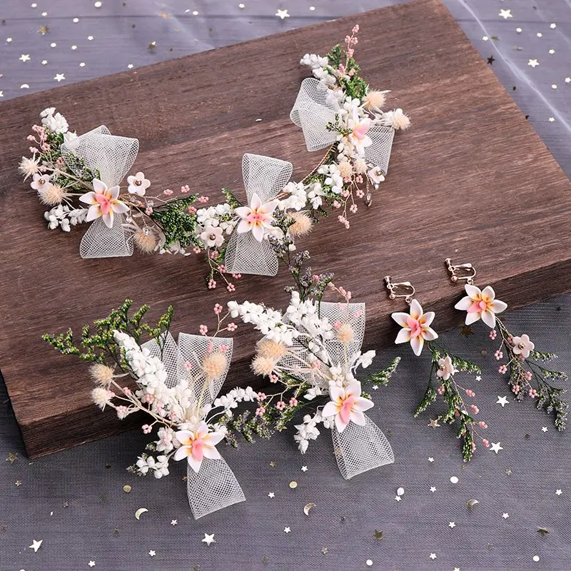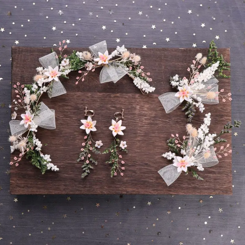 Handmade Jewelry Set Bride Bow Flower Hairband Headband Earrings Hair Pins Wedding Jewelry Bridesma