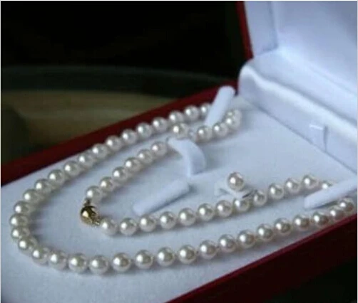 Prett Lovely Women's Wedding shipping>> 6-7MM White Akoya Cultured Pearl Necklace 18" + Earring Set