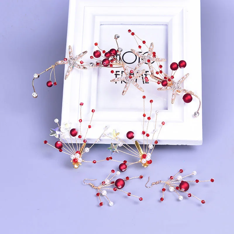 Rhinestone Simulated Pearls Headband Hair Clips Jewelry Set Engagement Wedding Headpiece Women Prom