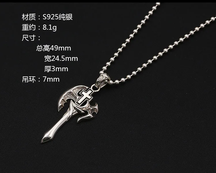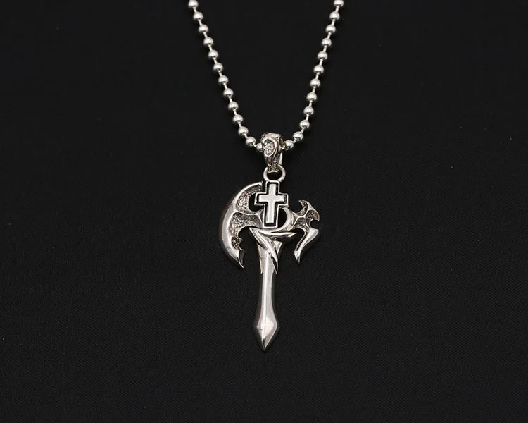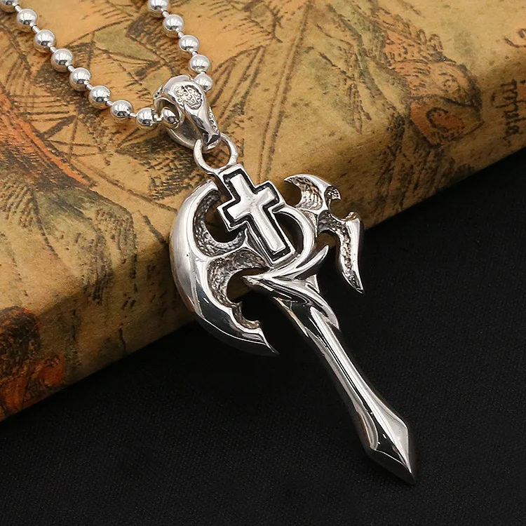 Best Seller Wholesale S925 Sterling Silver Jewelry Retro Thai Silver New Personality Axe Cross Trend Men And Wo