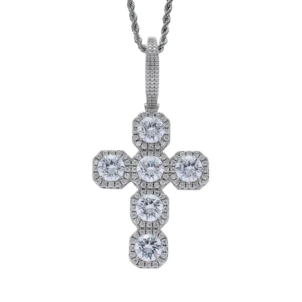 Hiphop Jewelry Gold Mens Iced Out Zircon 87mm Big Cross Pendant with Large Clasp Rope Chain Necklac