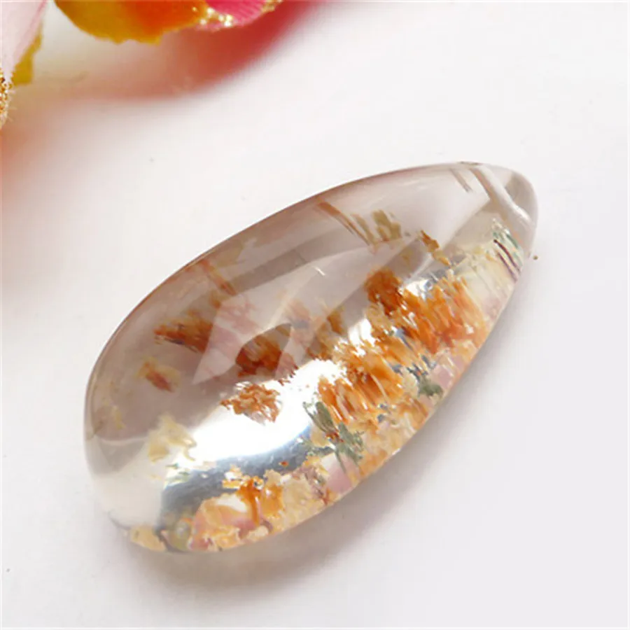 REVIEW TOP SELLER 26x15x11mm Genuine Natural Garden Orange Green Phantom Quartz Crystal Waterdrop Pendant Bead Free S