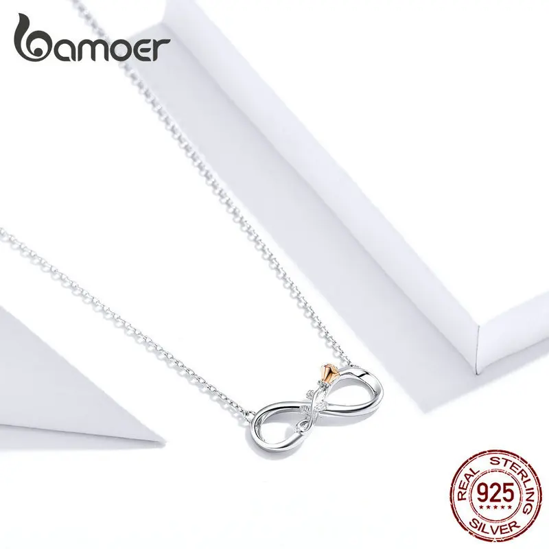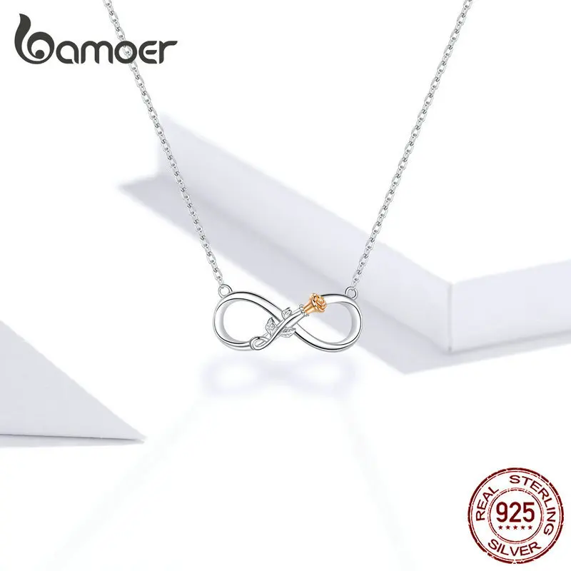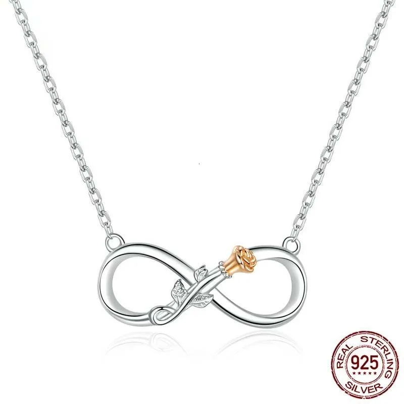 Authentic 925 Sterling Silver Rose Flower Infinity Love Short Neckalce for Women Choker Chain Luxur