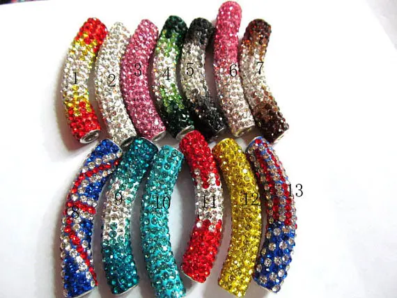 REVIEW TOP SELLER FRE SHIP --9x46mm 8pcshigh quality pave tube spacer bar column curved assortment with czech crystal